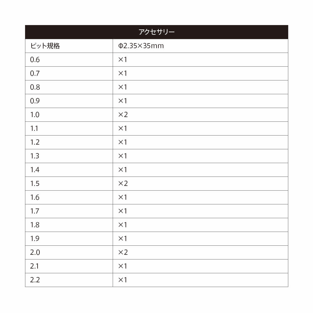 | ビット規格 | Φ2.35×35mm |