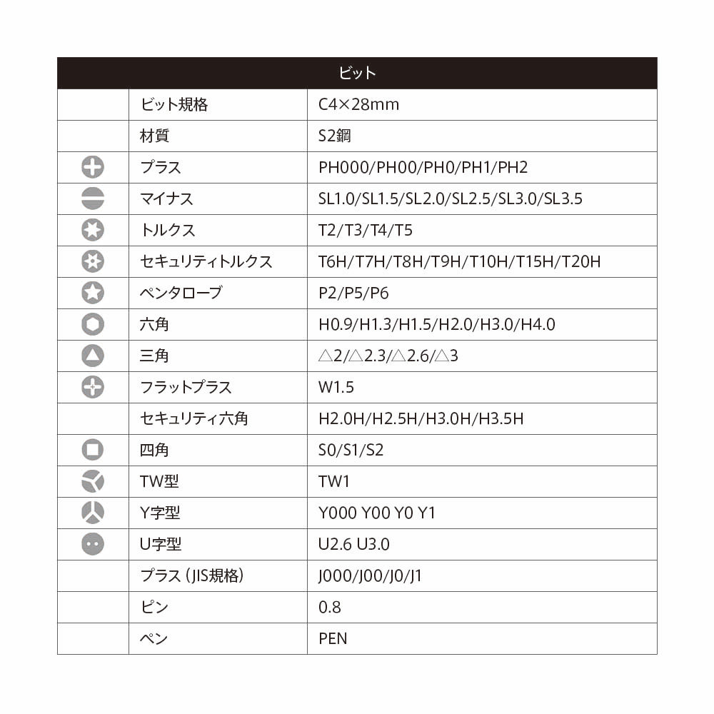 | ビット規格 | C4×28mm | |